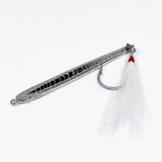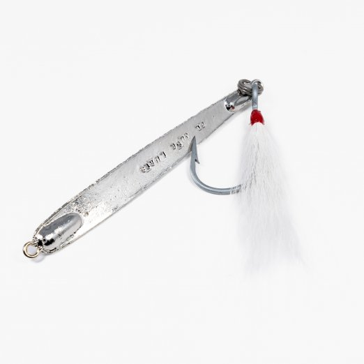 Point Jude Sand Eel lures come with single, heavy duty siwash hooks ornamented with white bucktails, and are available in 1.25 oz size.